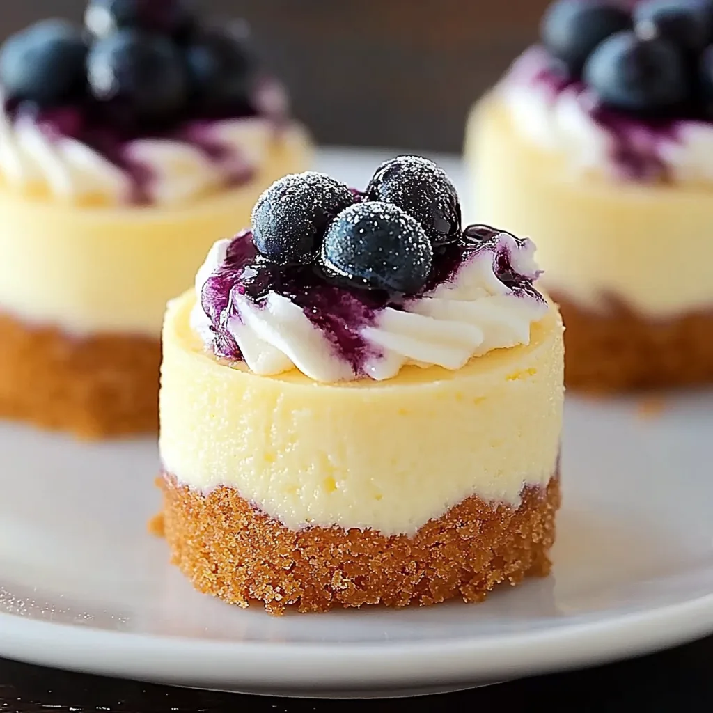 Juicy Mini Lemon Blueberry Cheesecakes are a delightful treat perfect for any occasion. These bite-sized wonders combine the tartness of fresh lemons with the sweet burst of blueberries, creating a