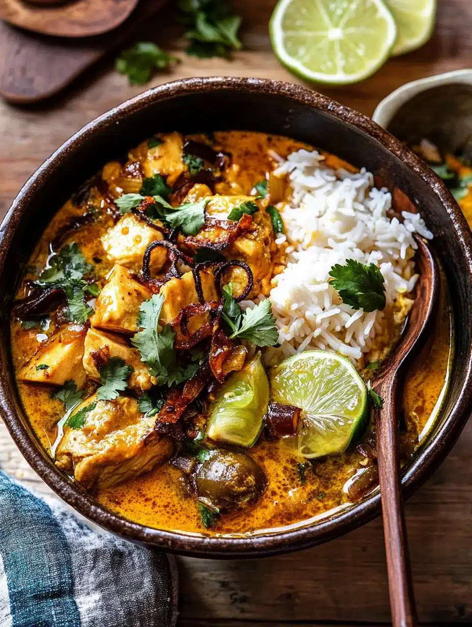 Imagine coming home to the enticing aroma of coconut and spices wafting through your kitchen. This dish is a true testament to the power of slow cooking. The chicken becomes incredibly tender, soaking up all the rich flavors of the curry. Paired with the crispy shallots and fresh basil oil, each bite is a harmony of textures and tastes that will leave you craving more. Whether you’re serving it over rice or with warm naan, this recipe will surely impress your family and friends.