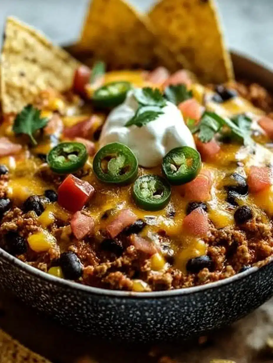 7. Serve with Toppings: If desired, serve with crushed tortilla chips, sliced jalapeños, and chopped cilantro on top.