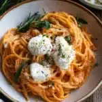 Red Pepper Pasta in Cream Sauce with Burrata and Fresh Herbs is a truly delightful meal that combines rich flavors and vibrant colors. This recipe is not only simple to prepare but also offers the flexibility to customize according to your taste. Whether for a casual dinner or a special occasion, this dish is sure to impress. Its creamy texture and the luxurious addition of burrata create a satisfying experience that will leave you craving more. Enjoy your culinary journey with this stunning pasta dish!