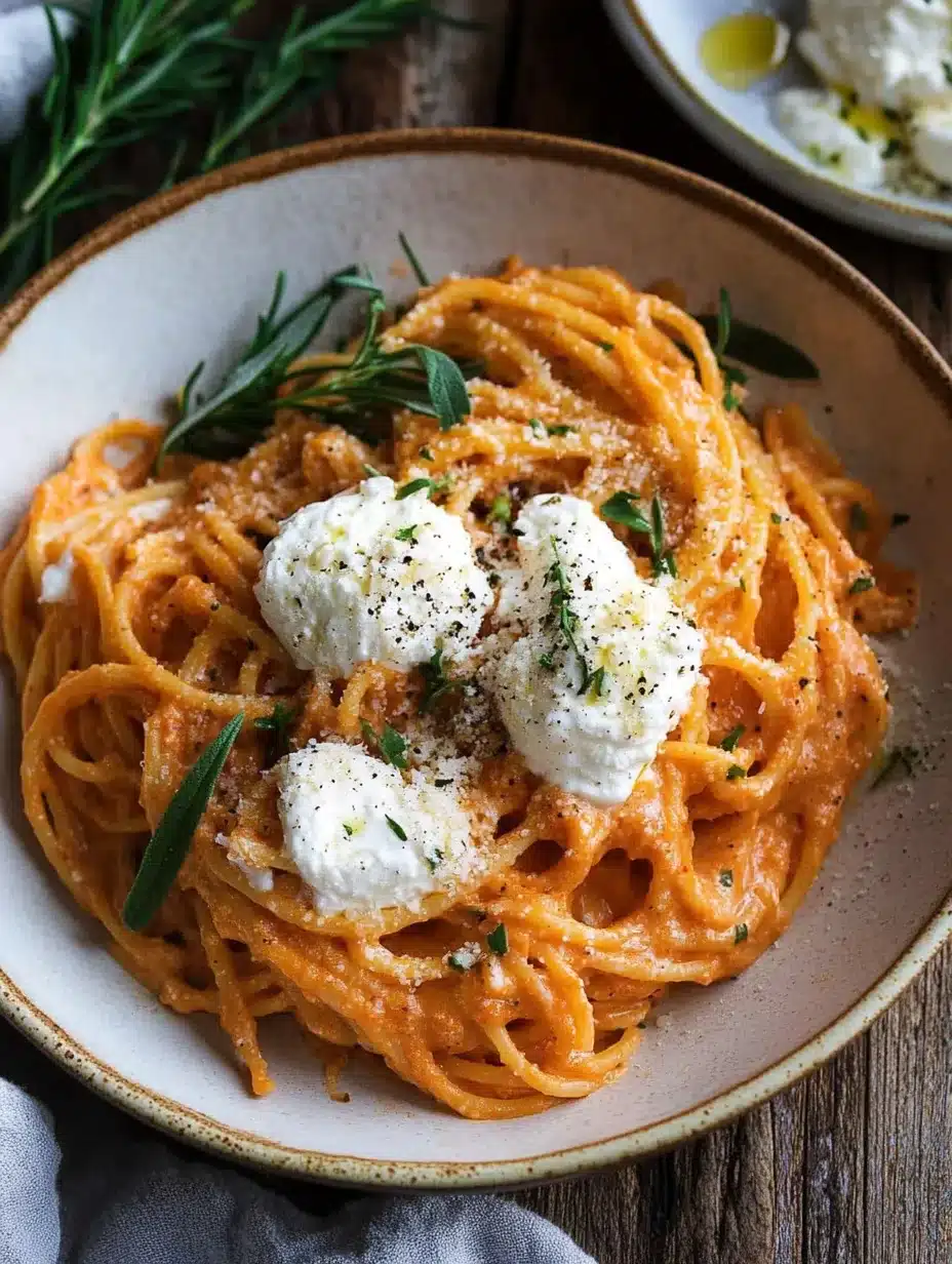Red Pepper Pasta in Cream Sauce with Burrata and Fresh Herbs brings together an array of flavors and textures that will tantalize your taste buds. Here are some reasons why you’ll fall head over heels for this dish:
